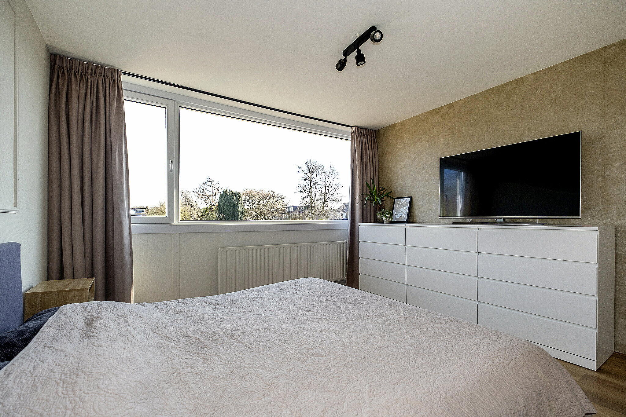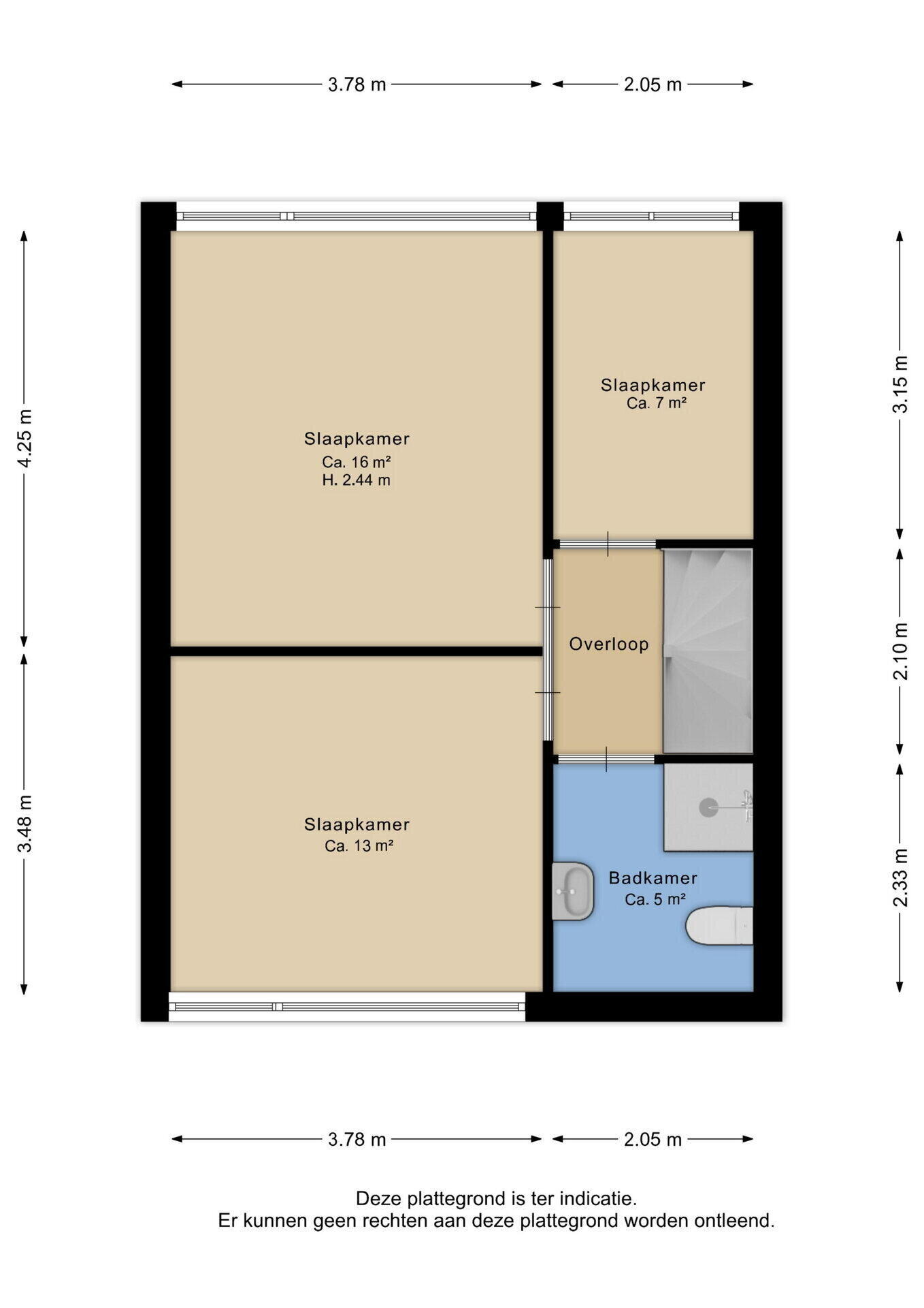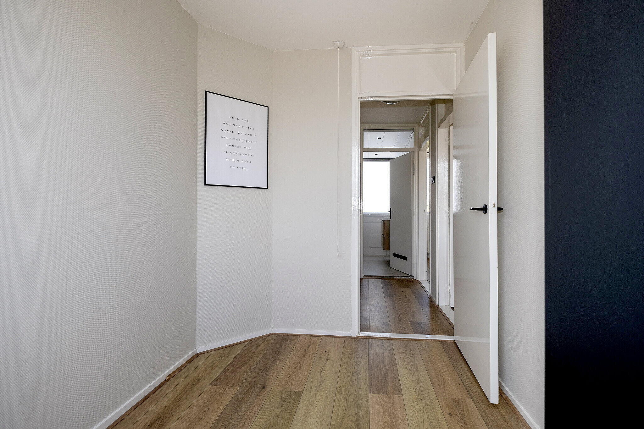 De overloop biedt toegang tot drie slaapkamers. De kamers zijn functioneel ingedeeld en geschikt als slaap-, werk- of hobbyruimte.