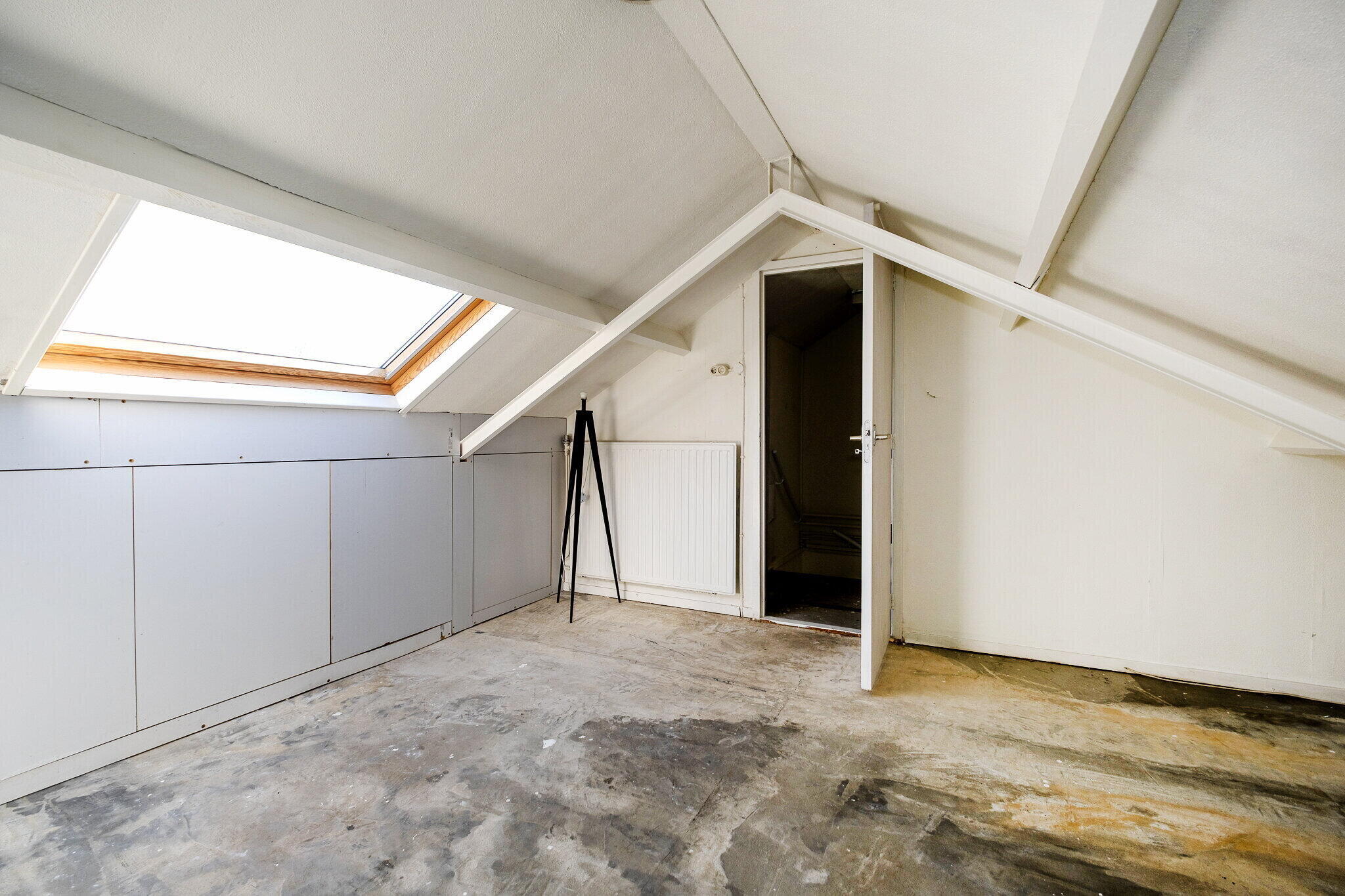 Via een vaste trap bereik je de zolderverdieping. Hier bevindt zich een vierde slaapkamer. Daarnaast is er een voorzolder met de aansluitingen voor de wasmachine en extra bergruimte.