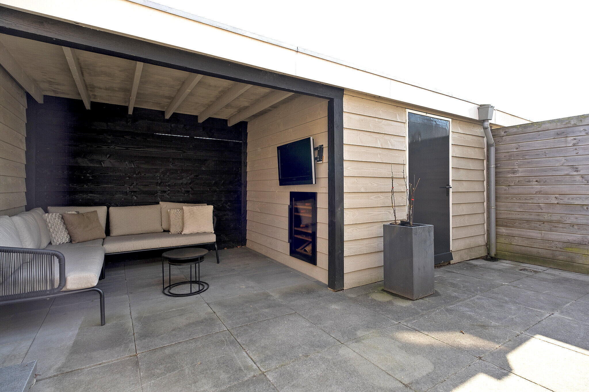 De achtertuin is zonnig gelegen en biedt een fijne plek om te ontspannen. De tuin beschikt over een overkapping, waardoor je ook bij minder weer heerlijk buiten kunt zitten. Achterin de tuin bevindt zich een berging, ideaal voor het opbergen van fietsen en tuinspullen.