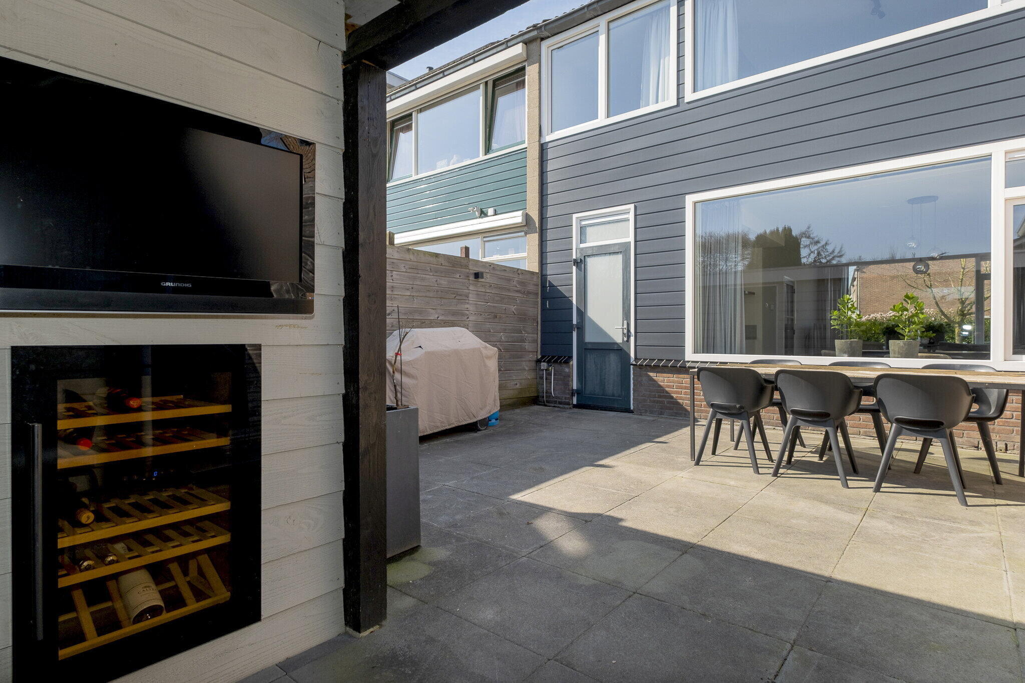 • Zonnige achtertuin met overkapping, voorzien van wijnkoelkast, en berging;